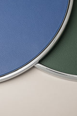 This charger plate, crafted from chrome-plated brass and lined with Nautical leather, combines elegance and functionality in a harmonious balance of form and material.