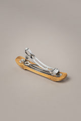 Un piccolo gesto di eleganza quotidiana, scolpito nella trama naturale della radice di bambù: questo fermaglio per capelli, dalla linea essenziale e femminile, unisce la delicatezza del materiale al rigore dell’aderenza in metallo, creando un equilibrio armonioso tra grazia e solidità.
