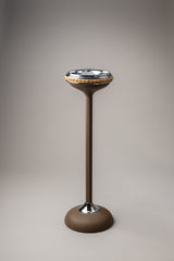This floor-standing ashtray interprets the ritual of smoking with balance and understated elegance, turning a functional object into a distinctive mark of style.