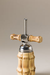 The bamboo root is an elastic material, yet sensitive to temperature and humidity changes. Being a natural substance, it might fade in color and lose its original shine over time, especially as regards those objects which often come in contact with water. Heat sources (radiators, flames, halogen lamps, etc.) might cause deformations or torsions. In case of dehydration we recommend a periodic application of a thin layer of ecological linseed oil or Vaseline, using a dry pad. The metal parts are not to be cleaned with abrasive substances but simply by using a buckskin cloth, or else in the case of persistent stains or smudges, with a cotton cloth dampened in denatured alcohol. Washing, when required, must be done by hand, with lukewarm water and mild detergents. Do not leave the material to soak and dry it thoroughly before storing it.