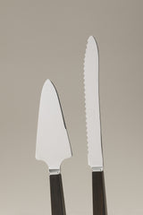 A culture which does not accept compromises; the table is a playground with very specific precepts and rules. The mise en place performs a central role which does not compromise on the varieties and methodologies of its principal instruments: the cutlery. The dessert set composed by a cake shovel and dessert knife in stainless steel stands out against the wooden handle which wraps its adherences to perfection.