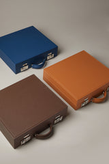 Everything inside is skilfully handmade. The accessories include 2 leather dice rollers, 2 traditional dice and 1 double die, 30 checkers carved from Indian ebony. At the end of the game, the case closes with a lock and a key, until you are ready to roll the dice on your next exciting game.