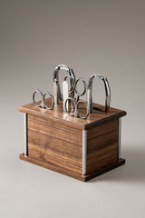 The types of woods employed for this product are soaked with those oils which are naturally contained in the material. The polishing of the surfaces is then made with beeswax, and no protective coating is applied (varnishing). Small scratches can be removed with a slight abrasion of the material followed by a consequent application of a thin layer of ecological linseed oil or vaseline. Washing, when required, must be done by hand, with lukewarm water and mild detergents. Do not leave the material to soak and dry it thoroughly before storing it. The supplied instruments are made of stainless steel and therefore they provide a good resistance to oxidation. However, please note that it is better to dry the products before storing them, as they are made of tempered steel. The sharpening of the edges must be entrusted to skilled staff.