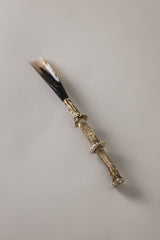 A tailor-made accessory, a status symbol with class and attention to detail; when it comes to shoes, the mind evokes visual fascinations which speak of fashion and trends. But the true footwear lover does not forget the importance of the accessories dedicated to it, to which it is necessary to consecrate time and space within the wardrobe. The shoehorn is one of those treasures, made with a rustic handle composed of three roe deer antlers and ending with a spatula in Zebu horn.