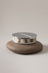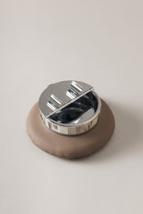 An object of which the connoisseur often finds himself in need for an alter ego, to be moved according to travels and needs. The boat ashtray denotes the purpose, but indulges its 'technical' features to the environment; the chrome-plated brass case with windproof windowed cover lays on a multifaceted base of Zebu horn slats, placed on the soft nautical leather cushion, suitable for typically cruise surfaces.