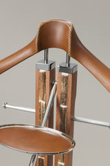 Stag antler, Mahogany, Cowhide, Chrome plated brass