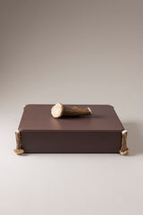 The object case has handle and feet made of deer antler, a material which by its nature pairs well with with an sturdy and rustic home interior.
