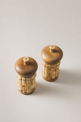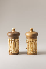 The right seasoning for the most convivial stage of the day. Cooking is an art and knowing how to dose the ingredients is an indispensable requirement. The salt grinder and the pepper grinder match the precious Iroko wood, naturally polished with beeswax, with the exotic ductility of the bamboo root, articulated in perfect plates in order to create a tailor-made covering. The blades of the grinder are respectively in ceramic and steel, to guarantee the perfect 'cohabitation' with the seasonings they host.