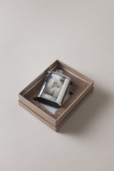 The mother of pearl shell is a rigid material, and it is subject to possible breaking in case of fall. As the material in not sensitive to humidity and temperature changes, it may be put in direct contact with water. The natural polishing of the surface is remarkably durable, yet it cannot be restored with products and technologies, other than professional. The metal parts are not to be cleaned with abrasive substances but simply by using a buckskin cloth, or else in the case of persistent stains or smudges, with a cotton cloth dampened in denatured alcohol.