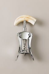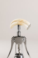 The pleasure of a glass of wine cannot be separated from the opening rite of the bottle which holds it. A well-deserved achievement at the end of the day, a discovery of which the bottle opener becomes the essential tool. The guarantee of the chromed solid brass of the body and of the turned stainless steel used for the spiral merges with the grip in warthog tusk, skillfully handcrafted to enhance its nature: strong and refined.