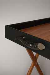 The Springbok horn is a rather resistant material, both to shocks and to temperature and humidity changes. Nonetheless, being a natural substance, its color could fade and it might lose its original shine over time, especially as regards those objects which often come in contact with water. In case of dehydration we recommend a periodic application of a thin layer of ecological linseed oil or Vaseline, using a dry cotton cloth. The leather employed for the manufacturing of this object is rather sturdy and does not have particular maintenance issues. If required, it may be taken care of with a nourishing balm.