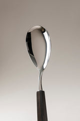 A culture which does not accept compromises; the table is a playground with very specific dictates and rules. The mise en place performs a central role which does not compromise on the varieties and methodologies of its principal instruments: the cutlery. The rice server in stainless steel stands out against a wooden grip which wraps its adherences to perfection.