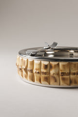 The Zebu horn is material which is sensitive to temperature and humidity changes. Being a natural substance, its color could fade, and it might lose its original shine over time, especially as regards those objects which often come in contact with water. Heat sources (radiators, flames, halogen lamps, etc.) might cause torsions and defoliation. In case of dehydration we recommend the periodic application of a thin layer of ecological linseed oil or Vaseline, using a dry pad. Washing, when required, must be done by hand, with lukewarm water and mild detergents. Do not leave the material to soak and dry it thoroughly before storing it. The metal parts are not to be cleaned with abrasive substances but simply by using a buckskin cloth, or else in the case of persistent stains or smudges, with a cotton cloth dampened in denatured alcohol.