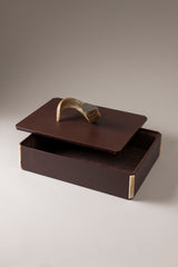 The object case has handle and feet made of Ram horn, a material which by its nature pairs well with with an sturdy and traditional home interior.