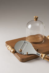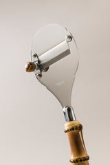 Products so exquisite that they deserve special attention and treatment. The truffle set lines up on a polished Iroko wood tray, finished with linseed oil, all which is required and needed for a satisfying tasting experience; the bell in blown glass preserves the properties and quality of the truffle, while the stainless-steel truffle slicer with adjustable blade guarantees the perfect cut. All the handles are made in bamboo root, a material suitable for a dining table with an exoric and informal taste.