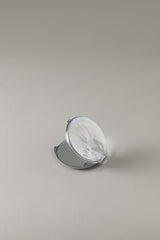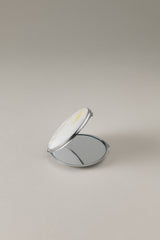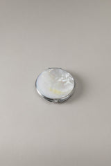 A habit that knows no gender distinctions, the staunchest ally to ensure a polished look. Made of precious Australian white mother of pearl, handcrafted and adapted to the nickel plated metal frame in order to conceal, like a shell, the handbag mirror, in an ideal return to the origins. One of the two surfaces reflects the magnified image.