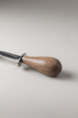 The polished elegance of the Canaletto walnut embraces the much rougher identity of the oyster opener thanks to its particular handle, designed to accompany the perfect movement that leads to unclose these delicate as well as refined fruits of the sea.