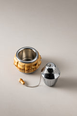 Making tea is a noble ritual that knows no geographical boundaries and embraces all styles: this tea infuser is made of chrome-plated brass and stored in a special case decorated with bamboo elements. The same exotic material decorates the hanging hook. A classic pleasure for all the senses.