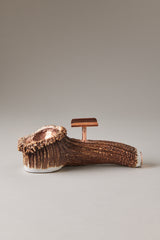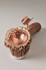 Our fondest memories, strongest feelings and most evocative scenes usually come from nature. We wanted to use this to create the perfect 'nest' for a sophisticated habit and to make it a proper event. This cigar ashtray is made by hollowing out the base of a deer antler and adding a hand-hammered copper plate inside, following the natural curves of a material so powerful and wild that any pretence of frugality is shattered.