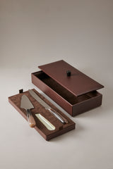 Made with the finest Zebu horn handles, this set is the crowning glory of the dessert service, which comes in a fine wooden box lined with saffiano leather that can also be used as an elegant storage container or valet tray thanks to its removable interior.