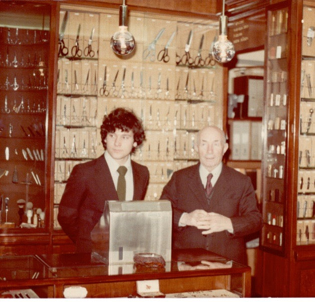 Giovanni Lorenzi nasce nel 1899 e di quell’anno porta con sé la tenacia e la forza che gli hanno permesso di uscire indenne dalla Grande Guerra, temprando sin dalla giovane età il suo carattere. Forse ha anche un pizzico di fortuna, la stessa che lo aiuterà in seguito ad avviare un’impresa di grande successo. Sopravvissuto alla terribile esperienza del conflitto, nel 1919 arriva a Milano dalle valli trentine insieme ai fratelli per aprire una bottega di arrotino e coltelleria, forte dell’esperienza di garzone maturata nei lunghi inverni trascorsi in Germania. Ma è il 1929 l’anno della svolta: Giovanni decide infatti di separarsi dal resto dei fratelli e aprire la sua bottega in via Montenapoleone, elegante zona residenziale del centro città, frequentata da una clientela raffinata ed esigente. Nasce così G. Lorenzi, una piccola attività commerciale dedita alla vendita di articoli di coltelleria e affilatura di lame, già ubicata nella sede che diventerà poi quella storica. Per soddisfare le richieste della clientela del quartiere, Giovanni inizia ad ampliare la gamma degli articoli in vendita e, affiancato dai figli e accompagnato dalla moglie Lina, si dedica con grande passione alla ricerca di prodotti originali e di qualità, spesso personalizzandoli su richiesta dei suoi clienti. Sono le fondamenta di una azienda costruita con passione e professionalità.