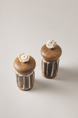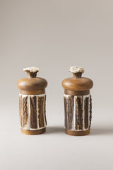 Il giusto condimento alla tappa più conviviale della giornata. Cucinare è un'arte e saper dosare gli ingredienti è requisito indispensabile. Il macina sale e il macina pepe accostano il pregiato legno di Iroko lucidato naturalmente con cera d'api al palco di cervo, declinato in placche perfette per crearne un rivestimento 'sartoriale'. Le lame della macina sono rispettivamente in ceramica e acciaio, per garantire la perfetta 'convivenza' con i condimenti che ospitano.