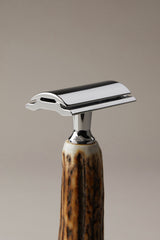 Esistono tradizioni che difficilmente trovano sostitute adeguate. Quando si parla di rasatura, si parla di un rito, tutto al maschile, che richiede tempi e strumenti ad hoc. Con il rasoio a lametta piatta, di tipo tradizionale, quel rito diventa esperienza superiore e senza tempo: l’impugnatura elegante e solida, realizzata unendo alla testina a pettine chiuso la ruvida eleganza del palco di Cervo, eleva un oggetto ordinario a simbolo di quotidianità straordinaria.