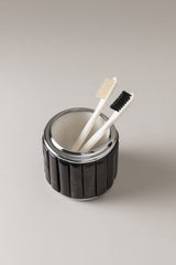 The Oryx horn is a rather resistant material, both to shocks and to temperature and humidity changes. Nonetheless, being a natural substance, its color could fade and it might lose its original shine over time, especially those objects which often come in contact with water. In case of dehydration we recommend a periodic application of a thin layer of ecological linseed oil or Vaseline, using a dry cotton cloth. Washing, when required, must be done by hand, with lukewarm water and mild detergents. Washing, when required, must be done by hand, with lukewarm water and mild detergents. Do not leave the material to soak and dry it thoroughly before storing it. The metal parts are not to be cleaned with abrasive substances but simply by using a buckskin cloth, or else in the case of persistent stains or smudges, with a cotton cloth dampened in denatured alcohol.
