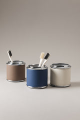 Complemento immancabile all'interno di un set di accessori, il barattolo porta spazzolino da denti diventa protagonista della stanza da bagno grazie al rivestimento esterno in Vitello nautico, declinato in una serie di delicate nuances e lavorato artigianalmente per aderire alla sua elegante circonferenza in metallo come un abito naturalmente perfetto.