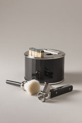 L'universo del fumatore concentrato in un compatto set completo di spuntasigari con taglio a V, pennello per spazzolatura del sigaro e fiammiferi. Un piacere esclusivo che costruisce la sua nicchia perfetta su una base in ottone nichelato rivestita di sfaccettata fibra di carbonio, apoteosi di un intenditore sicuro e determinato. (FORNITO SENZA FIAMMIFERI)