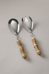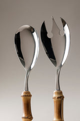 Una cultura che non accetta compromessi; la tavola è un campo di gioco con dettami e regole ben precise. La mise en place riveste un ruolo decisivo che non transige su varietà e metodologie dei suoi principali strumenti: le posate. La coppia da insalata in acciaio inossidabile svetta su un'impugnatura in bambù che ne avvolge le aderenze alla perfezione.