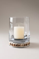 Disposte ad hoc per illuminare l'atmosfera di un giardino o strategicamente accese nella calda penombra del salotto, le candele sono da sempre l'elemento ideale per illuminare e creare l'ambiente. Il porta candele rende trionfante questa mission; realizzato artigianalmente in vetro soffiato è decorato da inserti in palco di cervo, materiale perfetto per un'atmosfera rustica e calda.