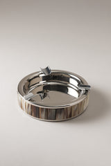 Meccanismi ripetuti, standard, consuetudini che si vestono di fascino; fumare è una piacevole disciplina moderata da una gestualità obbligata. In questo contesto il posacenere è elemento essenziale ed irrinunciabile; in ottone nichelato, poggia su di una sfaccettata base in corno di Zebù, materiale eclettico e raffinato, il sistema con tre panchette permette l'alloggio di diversi formati di sigari ed è removibile per un'agevole ed accurata pulizia.