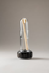 Un oggetto universale, che per sua natura richiede un suo spazio, immancabile all'interno della stanza da bagno. Lo spazzolino da denti trova la sua perfetta copertura nel contenitore in vetro e acciaio inossidabile, arricchito dalle placchette in bambù, sapientemente adagiate per ricreare la ricercatezza, il comfort e la sicurezza di casa e declinarla, nel suo piccolo, in un accessorio tanto indispensabile.
