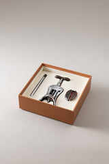 Un pensiero speciale da donare o custodire per un'occasione importante. Un prezioso cofanetto che riprende nelle tonalità il materiale protagonista; il set da vino incarna le esotiche suggestioni del bambù, utilizzato per assecondare artigianalmente le dimensioni dei dettagli cromati del cavatappi due leve, il tagliacapsule ed il termometro da vino.Il vassoio in legno è ricoperto in pregiata pelle Saffiano con interno in Alcantara a creare una vetrina unica, da esibire.