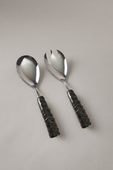 Una cultura che non accetta compromessi; la tavola è un campo di gioco con dettami e regole ben precise. La mise en place riveste un ruolo decisivo che non transige su varietà e metodologie dei suoi principali strumenti: le posate. La coppia da insalata in acciaio inossidabile svetta su un'impugnatura in orice che ne avvolge le aderenze alla perfezione.