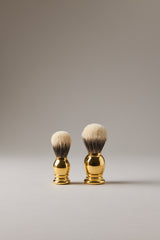 Quello della rasatura è un rito da assecondare tanto quanto la precisa manualità che richiede. Il pennello da barba in puro pelo di tasso argentato, garanzia di durevolezza ed estrema piacevolezza nell'applicazione, trova l'incastro perfetto nell'impugnatura in ottone dorato. Disponibile in 2 misure: dai 18 ai 22 mm di diametro.