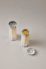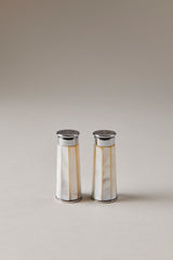 L'anima interna della coppia di spargi sale e spargi pepe è realizzata in vetro ed inserita all'interno del rivestimento in madreperla australiana, che ne diventa così nuova naturale custodia.